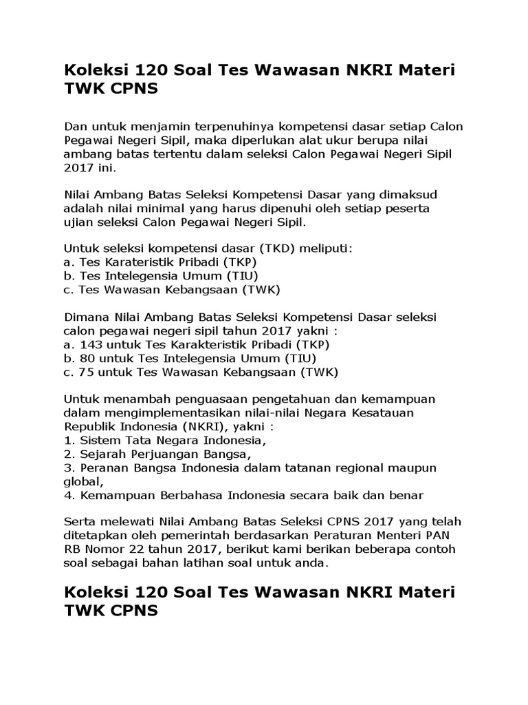 Contoh Soal Cpns 2021 Pengetahuan Umum Masbabal Com from 1.bp.blogspot.com Contoh soal cpns 2018 ini tersususn seluruh soal di awal dan kunci jawabannya di paling bawah. Contoh soal pengetahuan umum dibawah ini bisa kita gunakan untuk berlatih dalam rangka mempersiapkan diri menghadapi tes. Bangunan yang sangat indah ini berdiri di agra, india, yang terpilih sebagai salah satu dari tujuh keajaiban dunia pada tanggal 7 juli 2007 mewakili simbol hasrat dan cinta. Correct yourself before correcting others. Contoh soal ujian cpns tes pengetahuan umum pdf. Download contoh latihan soal tkd tiu cpns 2019 (disini). Check spelling or type a new query. Semua dosen adalah pegawai negeri.